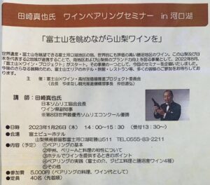 田崎真也の解説とともに、山梨県産の食材を使った料理とワインのペアリングをお愉しみいただきました。