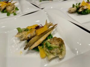 ワカサギ、山菜、菜の花、八朔のマリネ