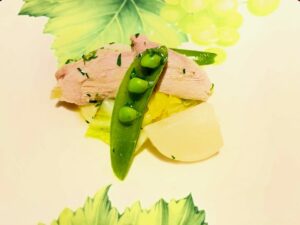 ホロホロ鶏胸肉、カブ、春キャベツのエチュベ
